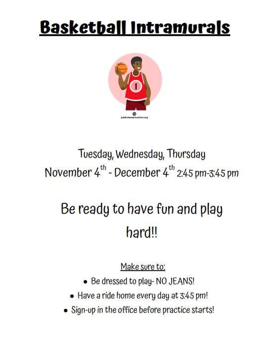 Basketball October 24, 2025October 24, 2025 4th/5th grade after school basketball starts November 4th!