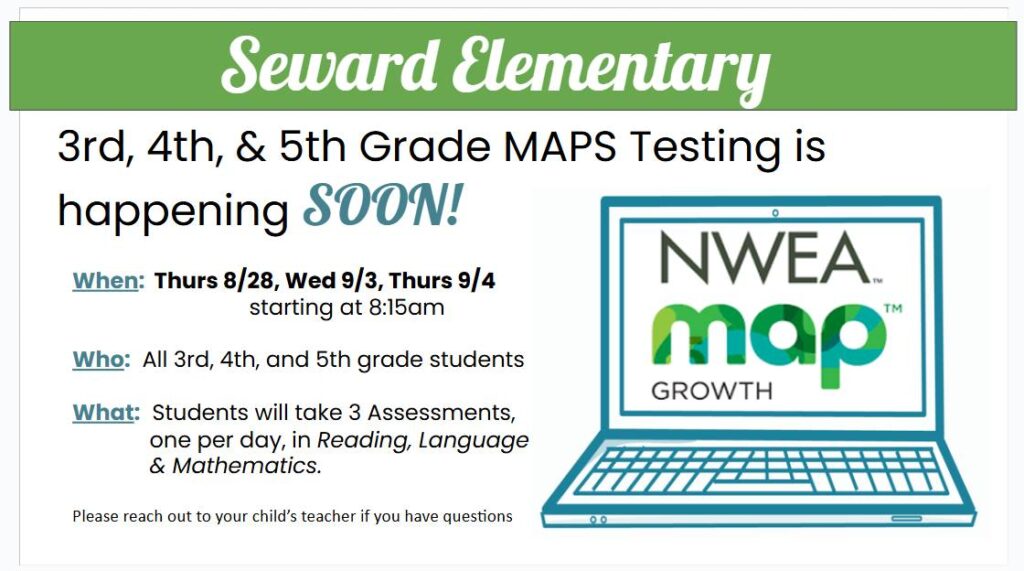 3rd, 4th, and 5th Grade MAPS Testing starts next week.