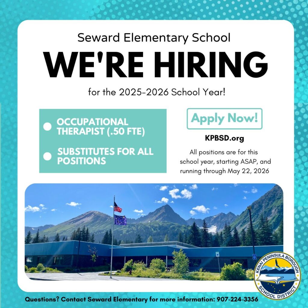 We are hiring! Seward Elementary is looking for an Occuaptional Therapist to join our team! https://www.applitrack.com/kpbsd/onlineapp/default.aspx?AppliTrackPostingSearch=location:%22Seward+Area%22