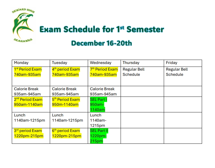 1st Semester Exam Schedule