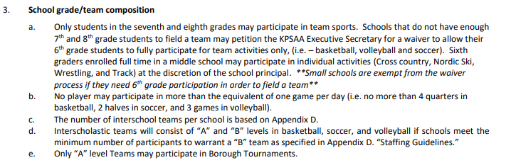 Rules for playing 6th graders per KPSSA manual (page 11)