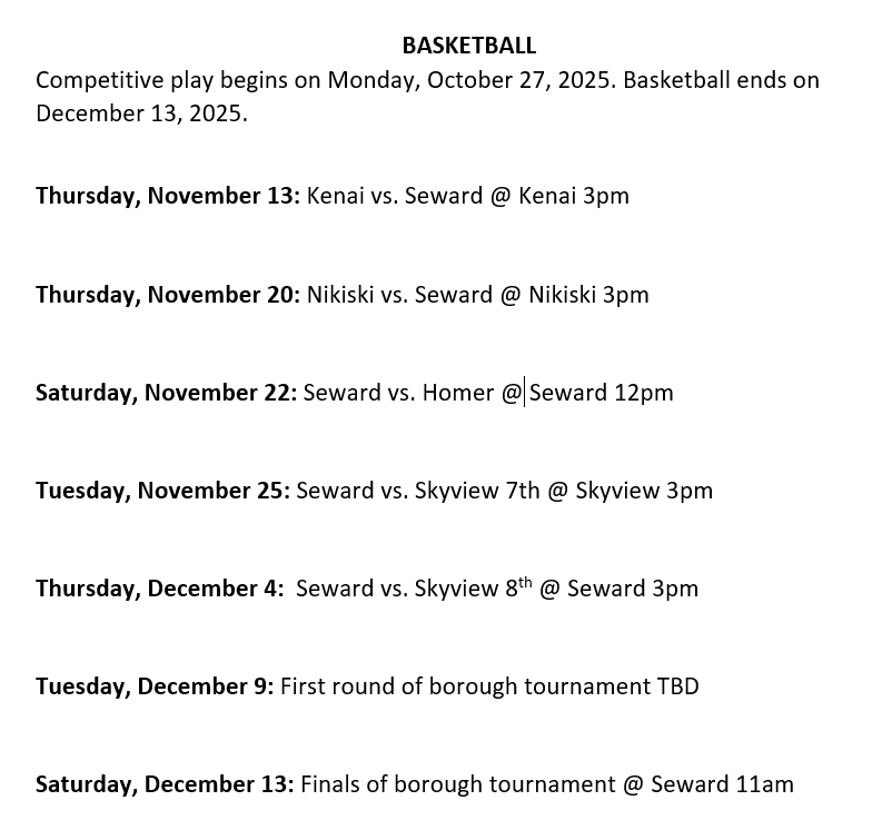 Boys Coach: Coty Beck ~ CBeck2@KPBSD.k12.ak.us