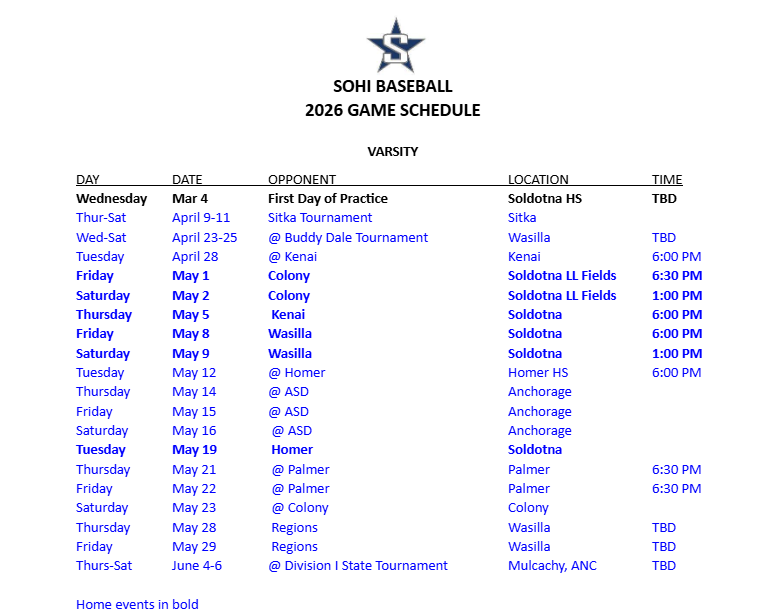 2025-2026 Baseball Schedule: