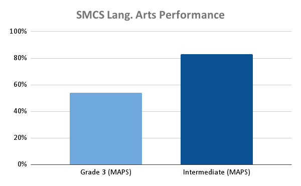 Intermediate students who scored proficient on the MAPS language arts assessment during the 2025 spring benchmark window.